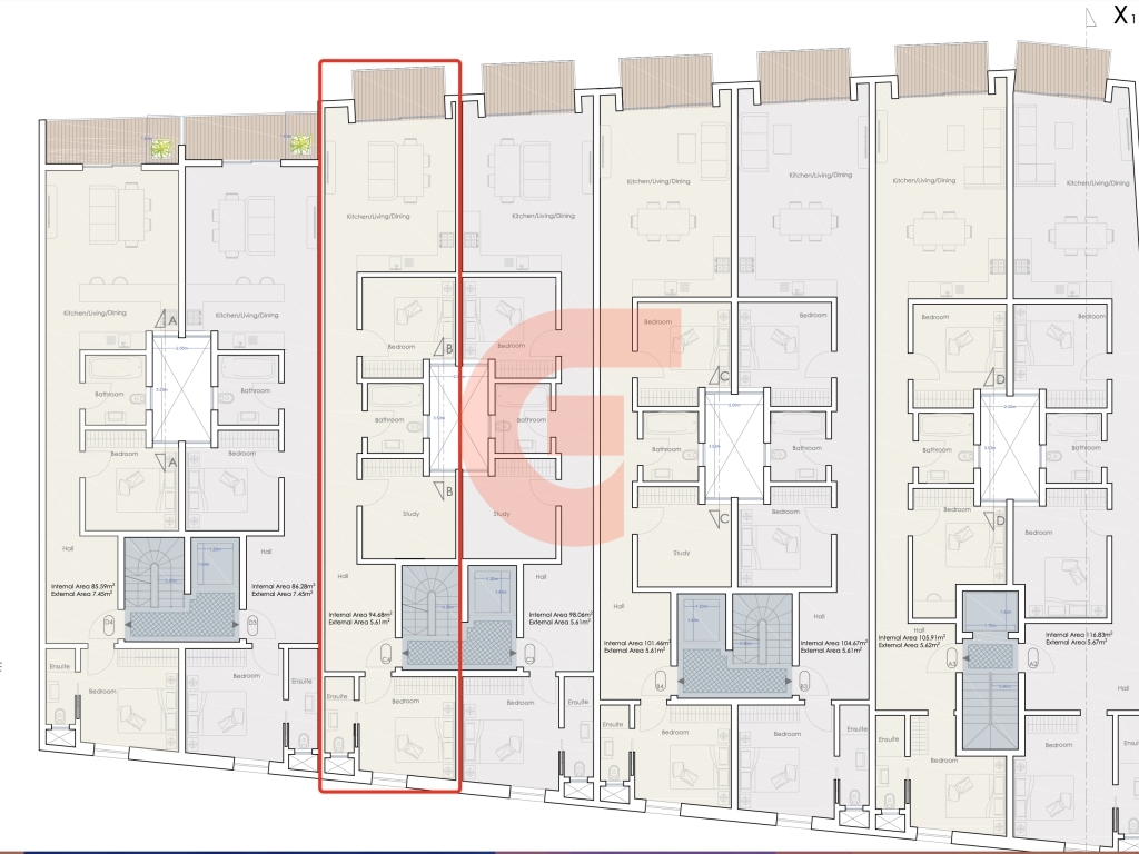 The apartment is located in a tranquil area, complemented by a large communal pool. The typical layout comprises a kitchen/dining/living, 2 double bedrooms, a study, 2 bathrooms (main en-suite), internal yard back balcony. Including this property, there is a one-car garage.