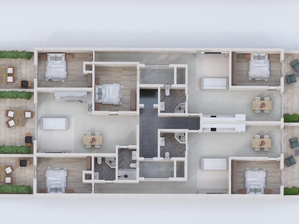 Situated on the top receded floor of a modern block in a quiet residential area on the outskirts of Sannat, this attractive two-bedroom penthouse offers a spacious layout complemented by generous outdoor areas.
